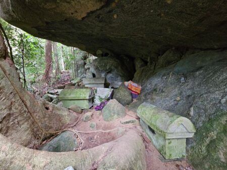 In the highland of the island is an old second burial cave. One of the customs here which does still happen in some areas is that when a person dies they are buried in temporary grave for 3 years. Then they are dug up and the villagers clean all the bones, have a party and then re-bury them in a permanent cave,